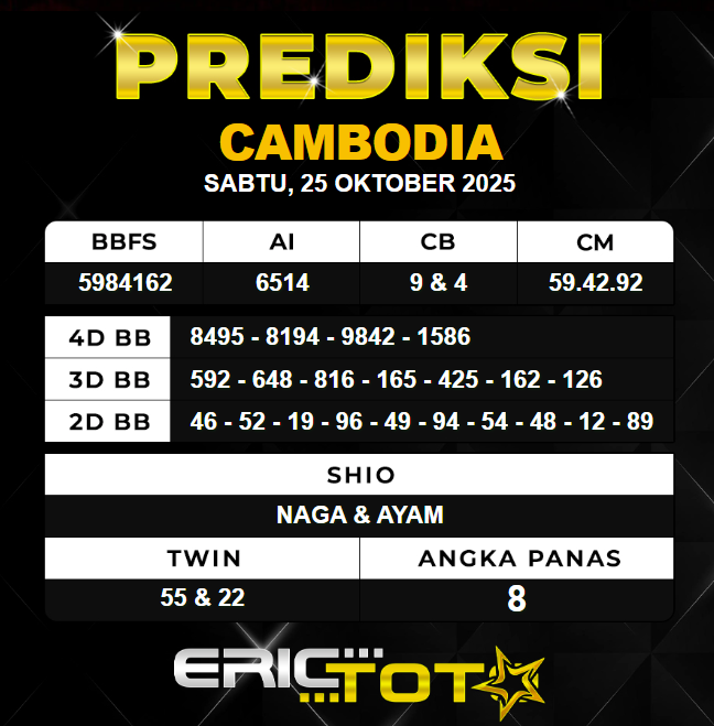 PREDIKSI CAMBODIA SABTU 25 OKTOBER  2025