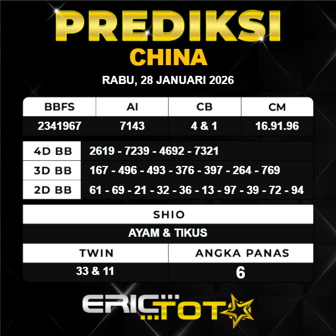 PREDIKSI CHINA RABU 28 JANUARI 2026