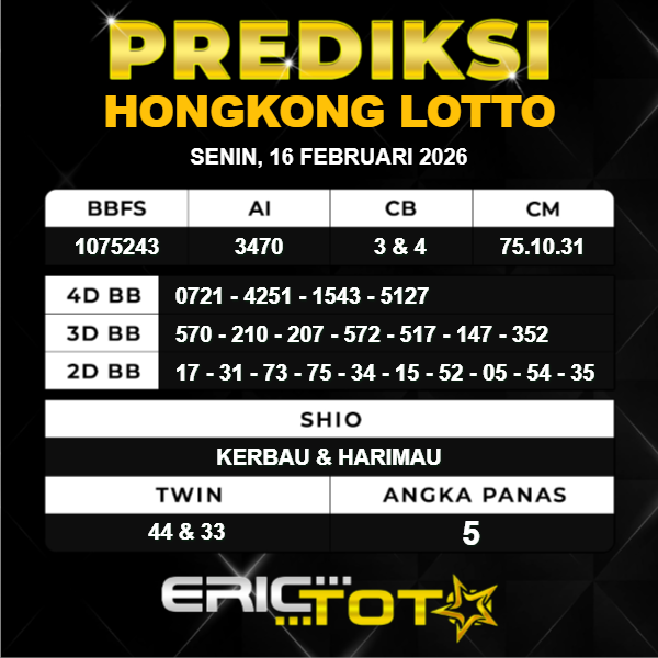 PREDIKSI HONGKONG LOTTO SENIN 16 FEBRUARI 2026