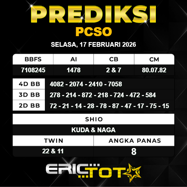 PREDIKSI PCSO SELASA 17 FEBRUARI 2026