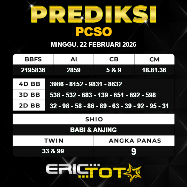 PREDIKSI PCSO MINGGU 22 FEBRUARI 2026