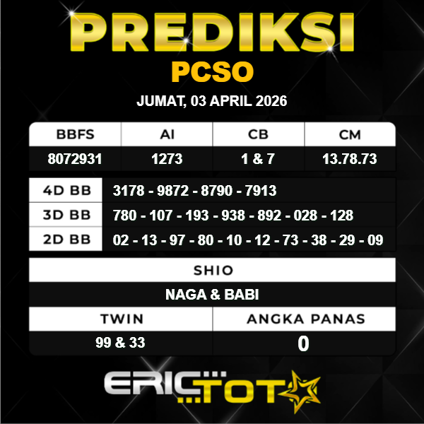 PREDIKSI PCSO JUMAT 3 APRIL 2026