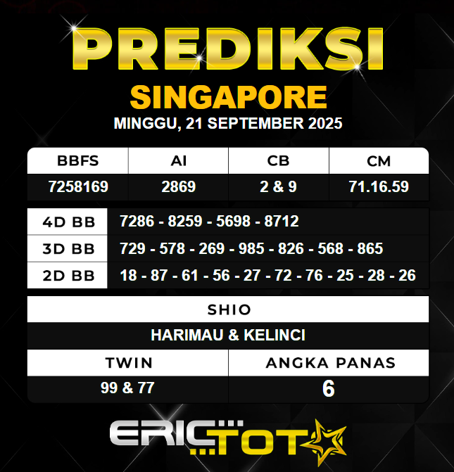 PREDIKSI SINGAPORE MINGGU 21 SEPTEMBER 2025