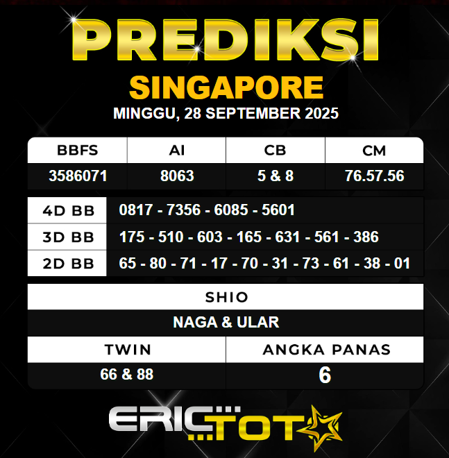 PREDIKSI SINGAPORE MINGGU 28 SEPTEMBER 2025