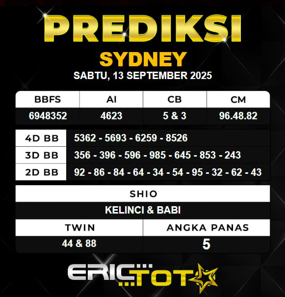 PREDIKSI SYDNEY SABTU 13 SEPTEMBER 2025