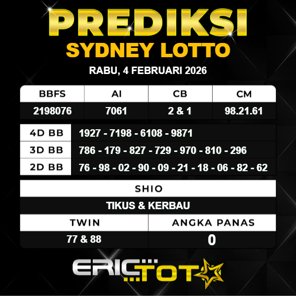 PREDIKSI SYDNEY LOTTO RABU 4 FEBRUARI 2026