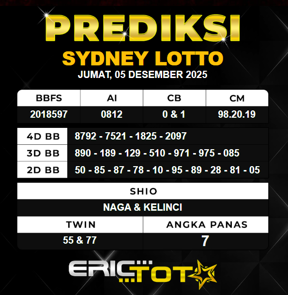 PREDIKSI SYDNEY LOTTO JUMAT 5 DESEMBER 2025