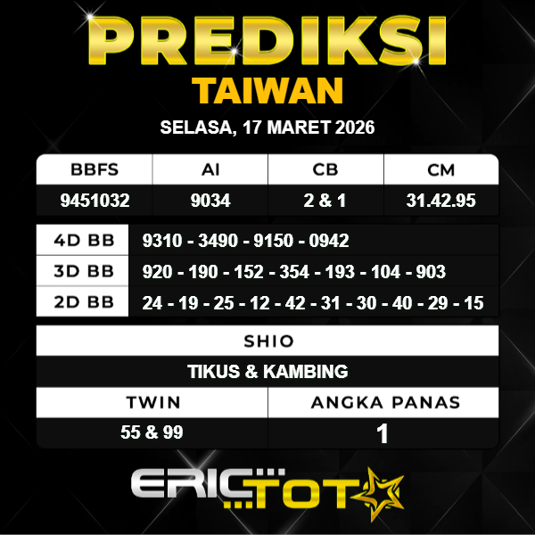 PREDIKSI TAIWAN SELASA 17 MARET 2026
