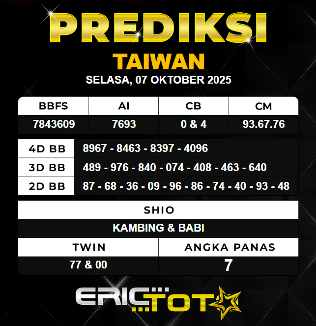 PREDIKSI TAIWAN SELASA 7 OKTOBER  2025
