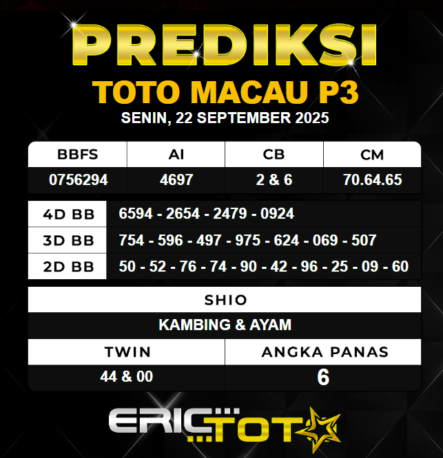 PREDIKSI MACAU SENIN 22 SEPTEMBER 2025