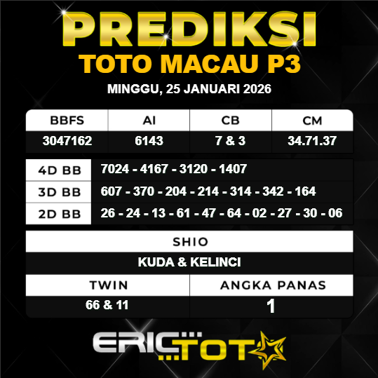 PREDIKSI MACAU MINGGU 25 JANUARI 2026